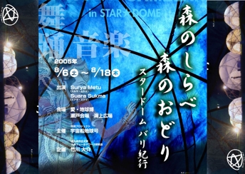 海上の森に囲まれた瀬戸会場のスタードームを舞台に、自然と人が融和するとろけるような暑い夏の島の踊りと音楽をこころゆくまで楽しんで欲しい。演目は日替わり8月7日は総勢50名のフルメンバー大公演