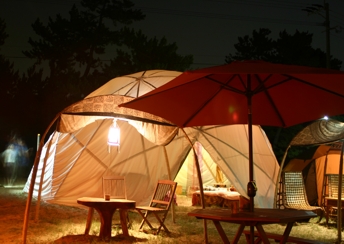 6メートルの竹製ドーム組立ワークショップ。指導は九州フィールドワーク研究会認定のドーム棟梁がおこなう。小学生から大人まで、だれでも楽しく大きなドームの立ち上げに参加することができます。