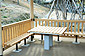 遊びと参加ゾーン内の地球市民村前に設置されたベンチです。テーブルがあって、食事をするには最適です |