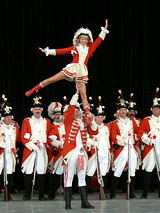 ケルンのカーニバル 軍隊を装ったカーニバル集団が練り歩きながら登場し、19世紀からつづくケルンの祭りを再現しました。女性メンバーのアクロバットや、男性メンバーらのコミカルなパフォーマンスもあり、会場を沸かせました |