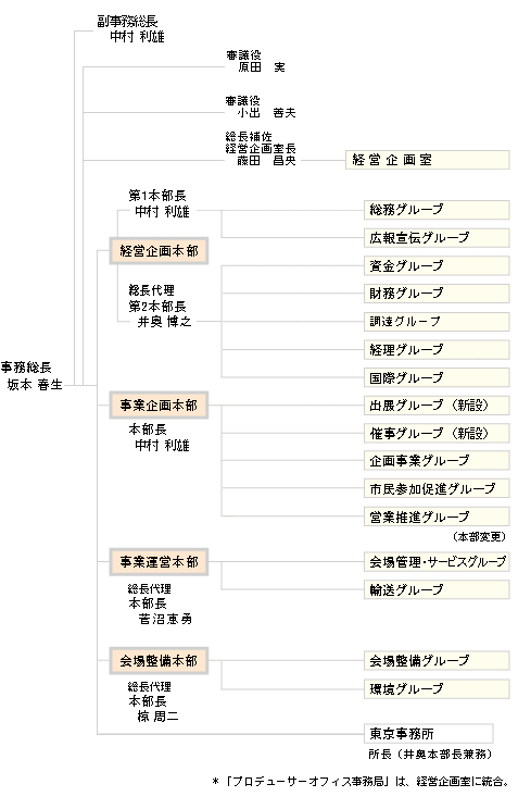2. プロデューサーとの連携を強化し、より機動的な業務の運営を図るため、プロデューサーオフィス事務局を経営企画室に統合します。