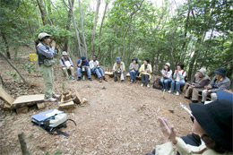 森の中での、「自然」「人」「アース・アート」などとの出会いふれあい、五感と想像力を使うプログラムへの参加・体験をとおして、自然のしくみについて学んだり、自然と人との関係性を見直すための「気づき」を得るきっかけの場とします。