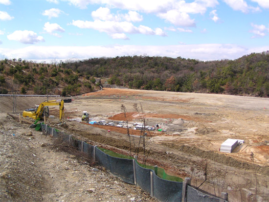 北ゲート跡南より西の企業パビリオンゾーンA方面を撮影